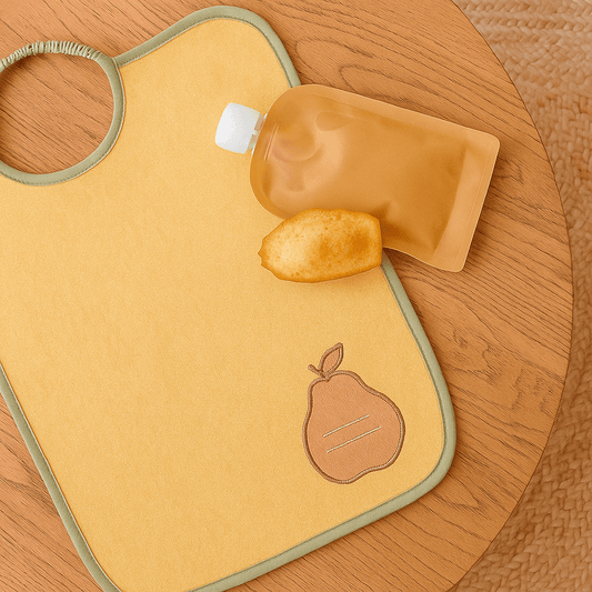 Bavoir maternelle 35x38 cm éponge avec étiquette prénom - Bavoir 24 mois - Poire/Pomme