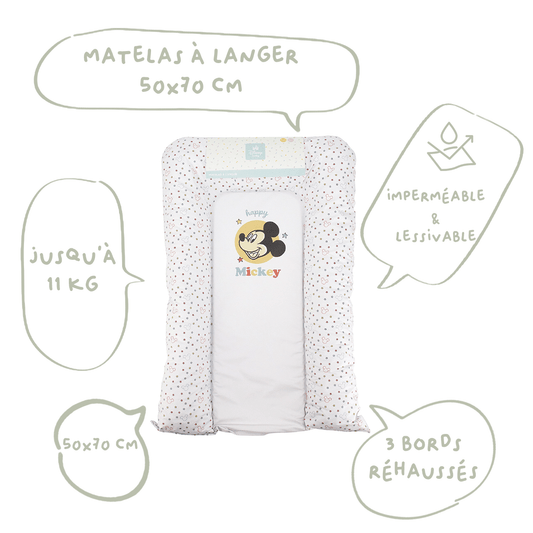 Matelas à langer bébé Flocons Happy Mickey - Matelas à langer pour bébé 50x70 cm