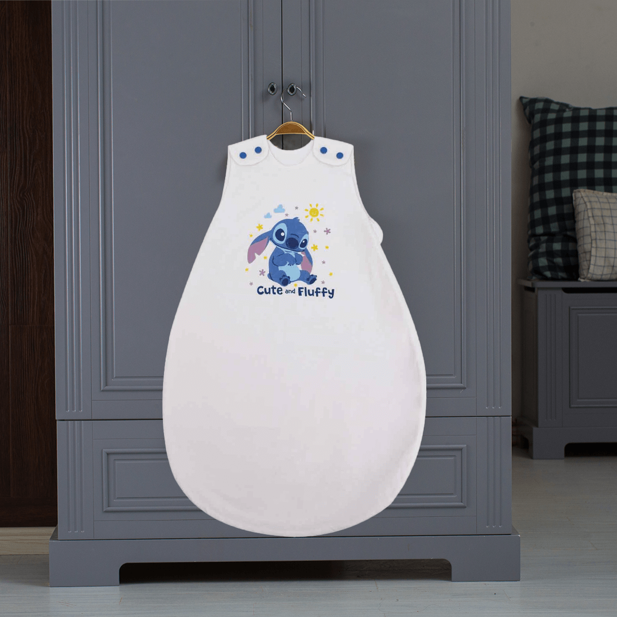Alliant sécurité, praticité et l’univers exotique de Stitch, cette gigoteuse accompagne Bébé dès ses premiers jours.