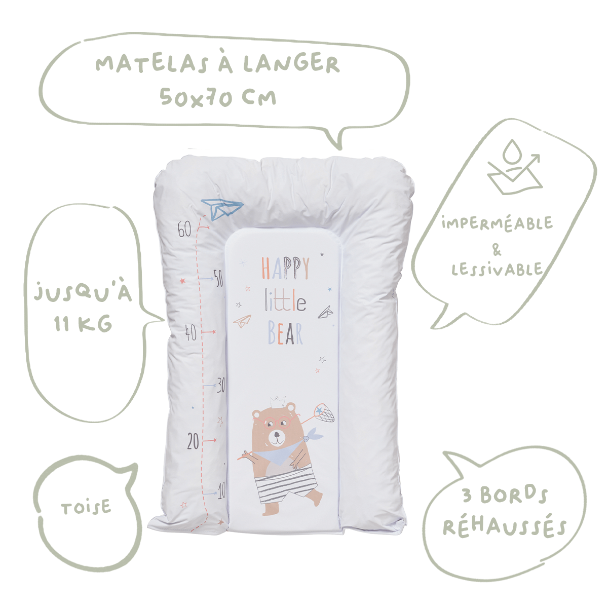 Matelas à langer Flocons Little Bear de Babycalin. Un motif très apprécié des tout-petits qui trouvera facilement sa place dans la chambre.